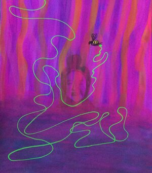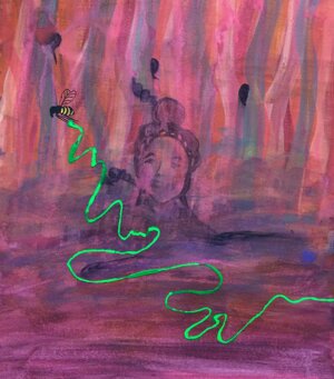 A Bee taking a pink dot for last exploration - 04 July 2021 06:06 pm_ Dedicated to Elena Colombo murdered at 11 years old in Auschwitz in 1944 _ watercolors on paper cm. 30 x 40